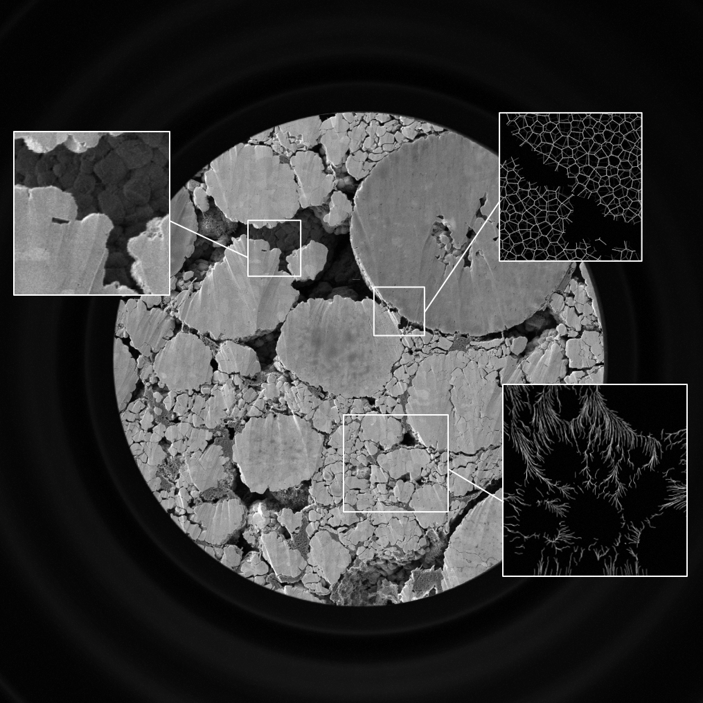 Automatically extract quantitative, reproducible microstructural metrics from microscopy data. Identify cracks, porosity, phases, grain structures, connectivity, and degradation mechanisms without manual scripting or subjective thresholds.